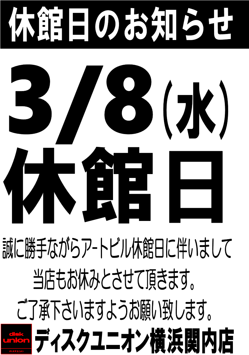 【店舗案内】3/11(水)休館日のお知らせ