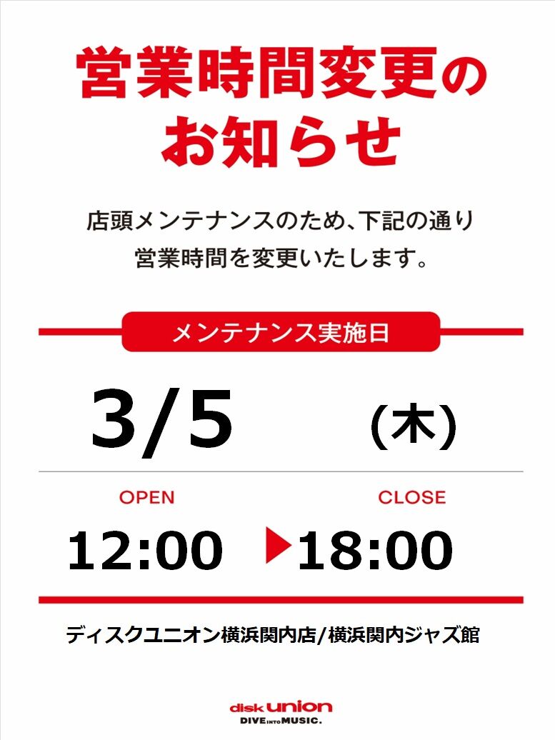 【店舗案内】3/5(木)店頭メンテナンスのため営業時間変更のお知らせ